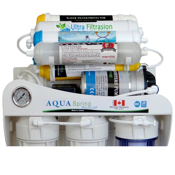 دستگاه تصفیهآب خانگی با برند معتبر اکوآاسپرینگ مجهز به مکانیزم دوگانه ده مرحلهای و دارای باکیفیتترین و بروزترین تکنولوژی در فرایند دستگاههای تصفیهآب خانگی است. در این دستگاه از متریال و هوزینگهای فودگرید، فیلترهایی برپایه گیاهی، مخزن آنتیباکتریال 16 لیتری، مگابوستر پمپ قوی بافشار 125 PSI و شیر جداگانه برخوردار است. آب شرب دارای مقادیر زیادی املاح و آلودگی است. این آلودگیها قابل رویت نیستند بلکه فقط با آزمایش تشخیص داده میشوند. بههمین علت اخیرا استفاده از دستگاهای تصفیهآب خانگی در کشورمان بهیک امر ضروری مبدل شده است. چراکه آب آلوده منشاء اصلی اکثر بیماریهاست. عملکرد فیلترهای این دستگاه در سهمرحله اول بهاینصورت است که کلیه املاح معلق و مضر، کلر، آفتکشها و شوری را از آب گرفته و درمرحله بعد نیترات، نیتریت، جیوه و میکروارگانیسمهای شیمیایی و فلزات سنگین (کلیه املاح سرطان زا) را بهطور کامل از آب میگیرد. سیستم اولترافیلتراسیون تکنولوژی جداسازی ذرات معلق تا 0/01 میکرون با غشاهای میان تهی از جنس پلی پروپلین بر پایه گیاهی گفته می شود. دستگاه فوق دارای فیلتر اکسیژن ساز میباشد که به وسیله سنگهای بیوسرامیک و شکست مولکولی آب سطح میزان اکسیژن آب را افزایش میدهد. در این دستگاه از مرغوب ترین فیلتر قلیایی ساز(یونایزر) استفاده شده است. این فیلتر با استفاده از فرآیند الکترولیز اجزای اسیدی و قلیایی آب را جدا میکند تا PH آب را افزایش دهد. در مطالعات اخیر اثبات شده است که نوشیدن آب قلیایی موجب سلامت پوست و مو ، بهبود عملکرد روده ، کبد و سیستم ایمنی بدن ،سم زدایی بدن ، کاهش وزن، کاهش قند خون در افراد دیابتی و … خواهد شد. دستگاه فوق دارای شیر مجزا، مخزن ذخیره مجزای آنتی باکتریال می باشد که از بهترین و معتبرترین دستگاه های ارائه شده در بازار است. کلیه محصولات نشانگر کیفیت و سلامت محصول اروپا را دارا می باشند و استانداردهای NSF – ISO – FDA – WATER QUALITY – CE را کسب نموده است.