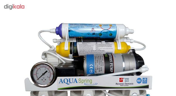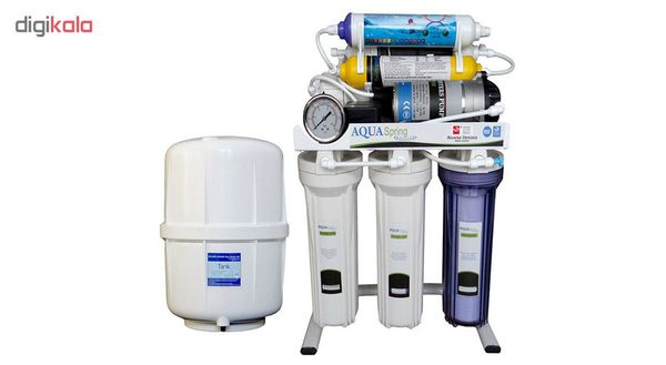 تصفیه آب خانگی آکوآاسپرینگ یک دستگاه با روش اسمز معکوس است که با استفاده از 7 فیلتر مختلف، آب را از کلیه ناخالصی ها و آلودگی ها پاک می کند. این تصفیه آب دارای دقت فیلتراسیون و حذف ناخالصی های %99 است و به آب املاح مفید و قلیایی می افزاید. همچنین دارای بدنه ای از استیل ضد زنگ و پلاستیک است که مقاوم و با دوام است. علاوه بر این قابل نصب زیر سینک است و دارای ظرفیت 12 لیتر است. این محصول در حین قطع برق همچنان عمل می کند و 12 لیتر آب تصفیه شده در خود نگه می دارد. تصفیه آب آکوآاسپرینگ دارای تجهیزات همراه است که شامل آداپتور، شیر، لوله، سوپاپ و فشارسنج است. این تجهیزات به شما کمک می کنند تا تصفیه آب را به راحتی نصب و تعمیر کنید. همچنین شما می توانید با استفاده از فشارسنج، فشار پمپ را بررسی کنید. این دستگاه دارای عمر متوسط 1 سال برای فیلتر های خود است. شما باید پس از گذشت 1 سال، فیلتر های خود را عوض کنید تا کارایی تصفیه آب را حفظ کنید.